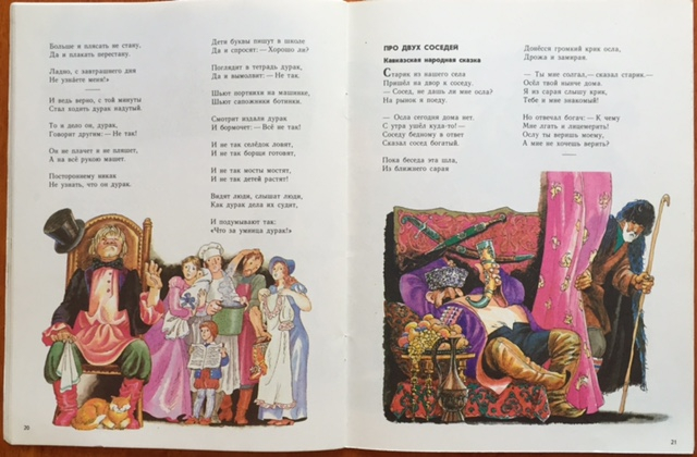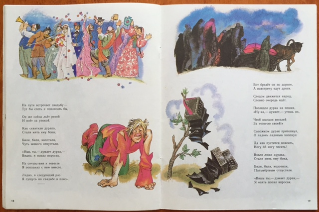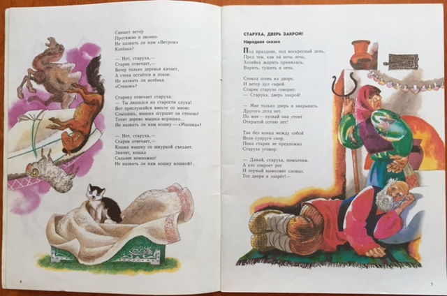 В детстве у меня было именно такая книжка, как выше на фото. Ее купил мне дед, когда мне было года четыре или пять, и она сразу стала одной из моих любимых. К сожалению, книжка затерялась давным-давно. Фразы из некоторых сказок в нашей семье стали, как сейчас принято говорить, мемом, вошли в обиход повседневной жизни.