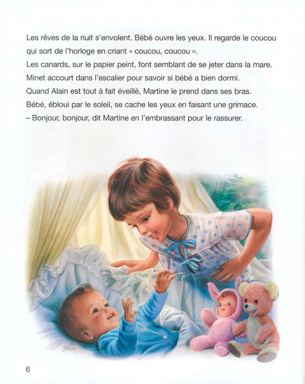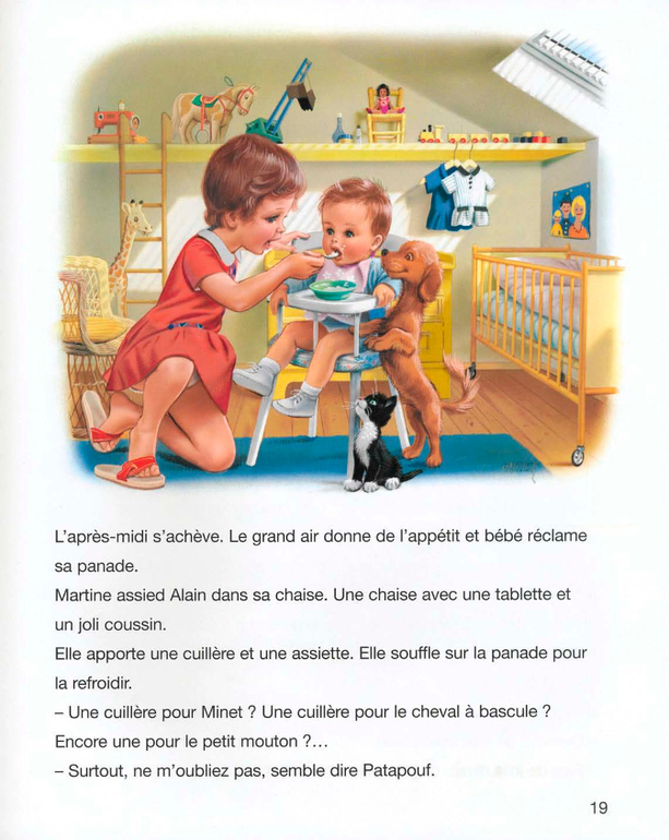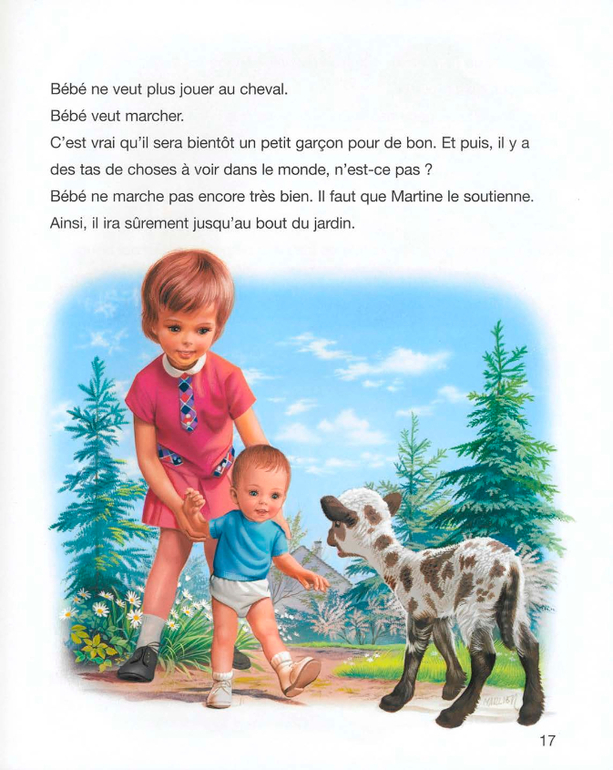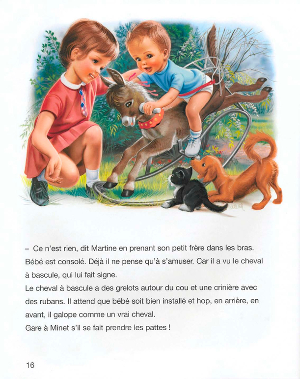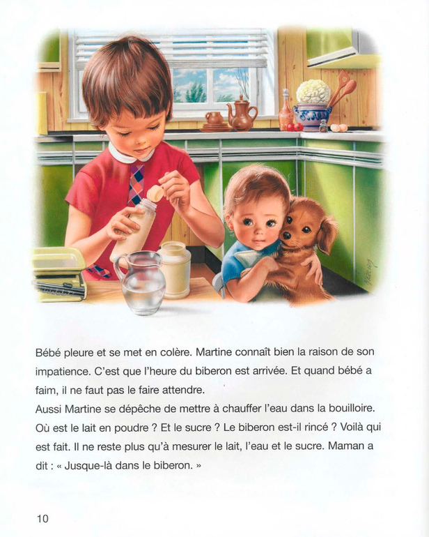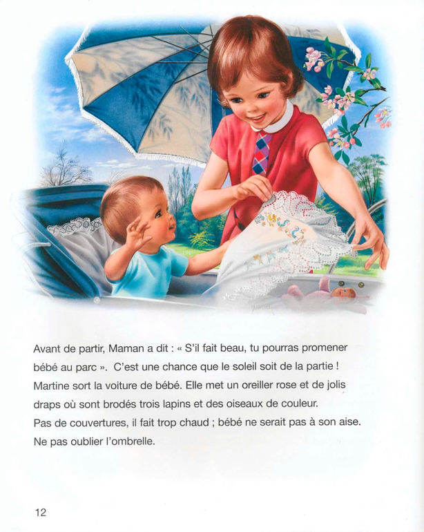 . Хоть бы с бабушкой или няней...Я буду дочке говорить так: сегодня девочка Мартина будет помогать папе (или маме, или бабушке) ухаживать за младшим братиком.А вообще меня в этой истории поразили две вещи. Это чисто французские лица детей. В странах с западным укладом с этим довольно сложно. Помню как несколько лет назад компанию Лореаль заклевали за то, что те использовали в своих кампаниях "лица французской национальности".И второе, это то, что книга учит девочку быть мамой. Это опять же так несвойственно странам западного уклада.