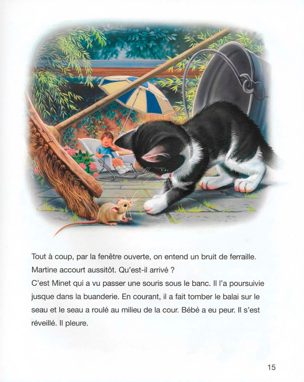 -Тсс, - говорит Марта, прикладывая палец к губам. Нужно не разбудить малыша. Она крадётся на цыпочках, а котёнок Минэ ожидает у скамейки. Всё спокойно.