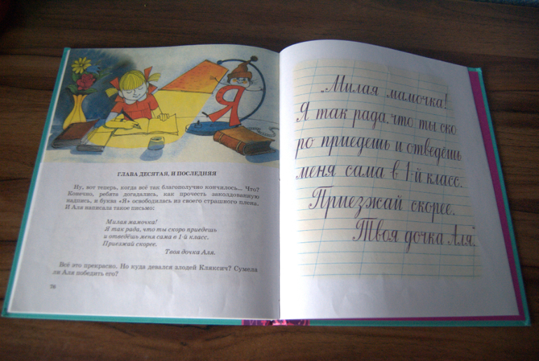 Сама история в представлении, наверное, не нуждается. В целом можно сказать, что Аля путешествует в стране букв с "А", чтобы спасти алфавит, и в частности букву "Я", от злобного Кляксича. Во время этого путешествия происходит много интересных событий, а ребятам предлагают решить задачки с буквами и цифрами и тем самым помочь нашим героям. То есть перед Вами не просто сказка, а еще и прекрасное развивающее пособие, да и алфавит у деток схватывается на лету в такой вот сказочной форме.