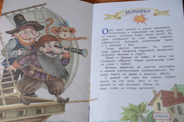Пиратская книга - книга развлечение, сыну понравилась, только и слышала - читай ма, читай дальше. Вот этот рассказ почему то вызвал взрыв хохота, ну и соответственно перечитывали его потом не раз.