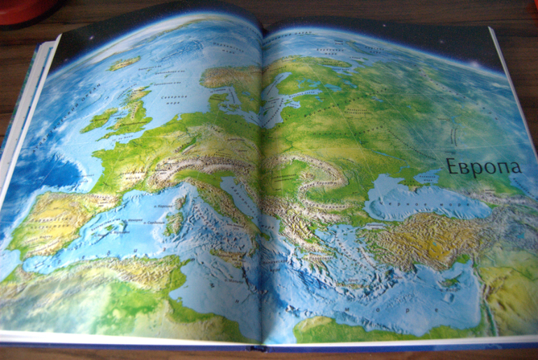 Выбирала я Атлас долго, идеального для себя не нашла, поэтому остановилась на этом. Хотелось бы нашу книгу, но таковой подходящей на тот момент не было, а может плохо искала :) Как и любое переводное издание, этот Атлас имеет неточности, плюс в нашем нет Крыма как части России, так как покупался давно, не знаю как там сейчас в переиздании, появился ли.