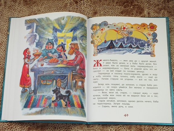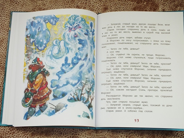 Про обработку и пересказ хочется замолвить слово. Так как первые две сказки ранее не читала никогда, не могу ничего сказать. А вот сказка "Морозко" в обработке Толстого всплыла в памяти сразу. Возможно, обработка не традиционная (не знаю), но это именно тот самый вариант из моего детства! Несмотря на грустный финал, лично мне почему-то этот вариант более близок. Скорее всего как раз из-за того, что я его знаю и помню.