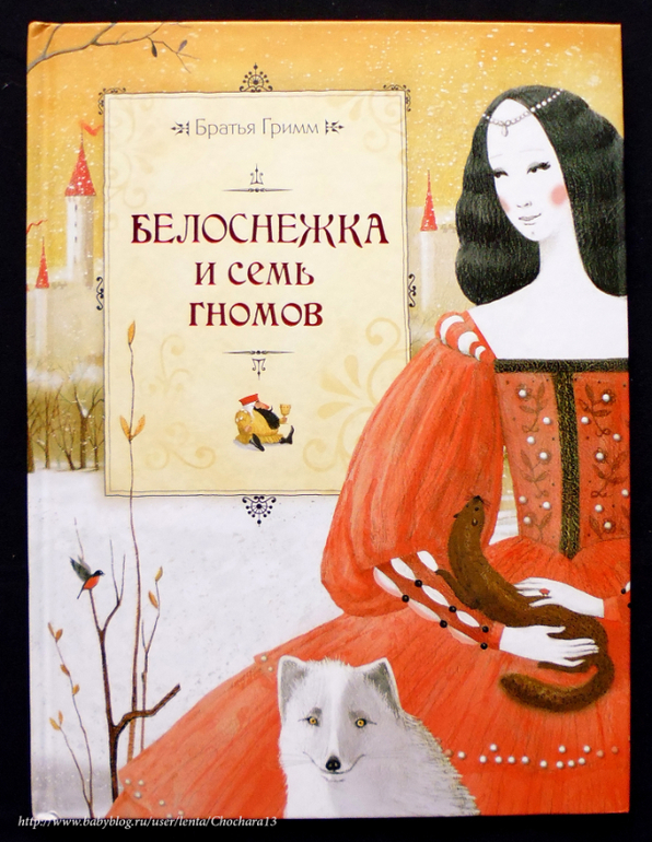 Началось всё, конечно же, с диснеевского полнометражного мультфильма 1937 года, который сам по себе является отдельным переработанным и адаптированным для малышей произведением. Сам сюжет в варианте братьев Гримм, на мой взгляд, дочке тоже нравится, и она его легко узнает в других произведениях. Как-то читала ей Пушкина "Мертвая царевна...", она меня спрашивает - "Это про Белоснежку, что ли?"