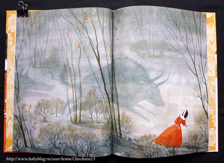 У нас уже есть книга с иллюстрациями Чарльза Санторе от "Доброй книги", но я поняла, что иногда женщина-художник создает какой-то необычный, но при этом очень правильный, женственный и какой-то особенно стильный образ для героинь подобных сказок.