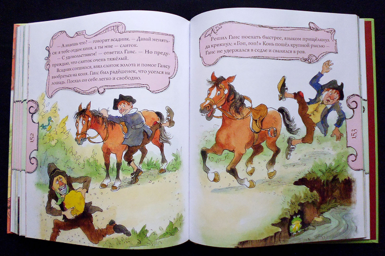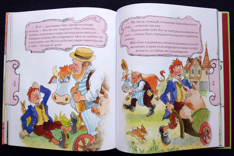 Купила в основном из-за отсутствующих у нас сказок бр. Гримм "Золотой гусь", "Домовые", "Счастливчик Ганс".