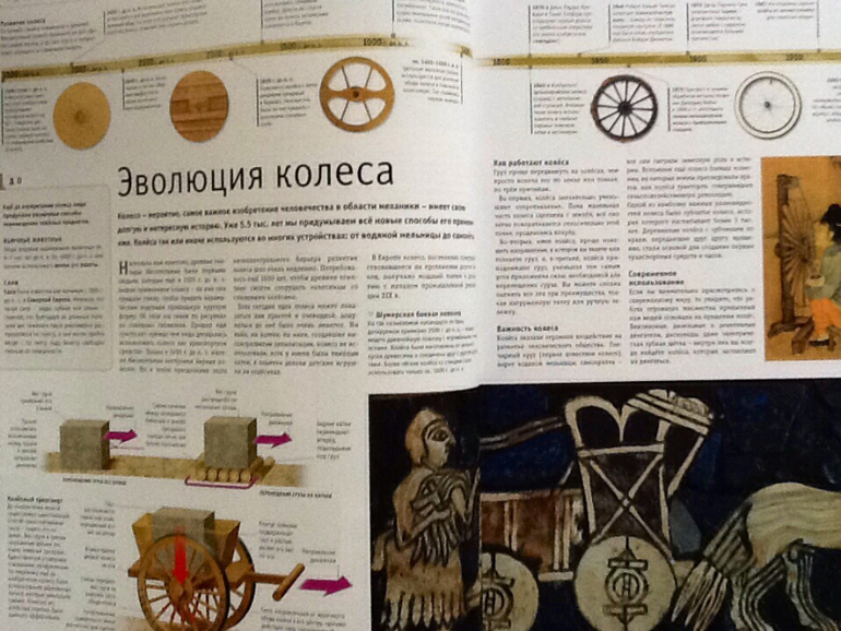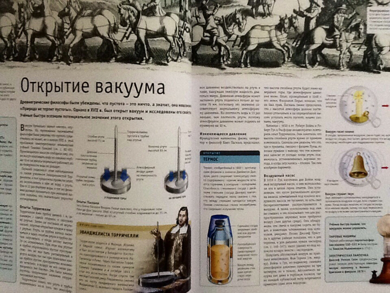 В начале каждого раздела есть хронологическая таблица, в которой показано, где и какие открытия и изобретения были сделаны в данный период. В каждой теме так же есть перекрестные ссылки и подробные хроники жизни великих ученых. Прекрасные иллюстрации, фотографии, диаграммы образуют динамику.