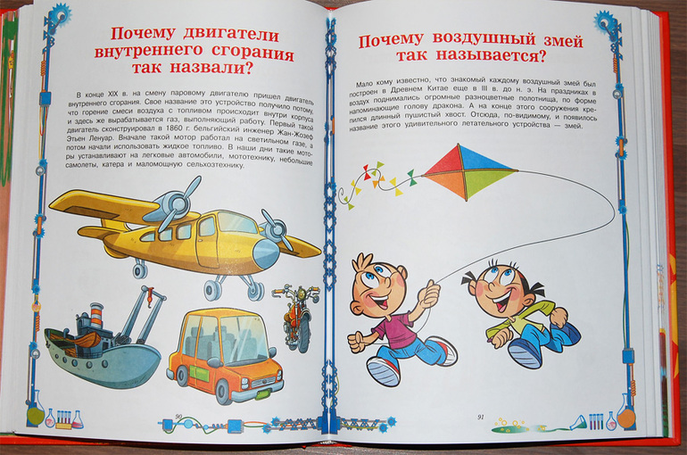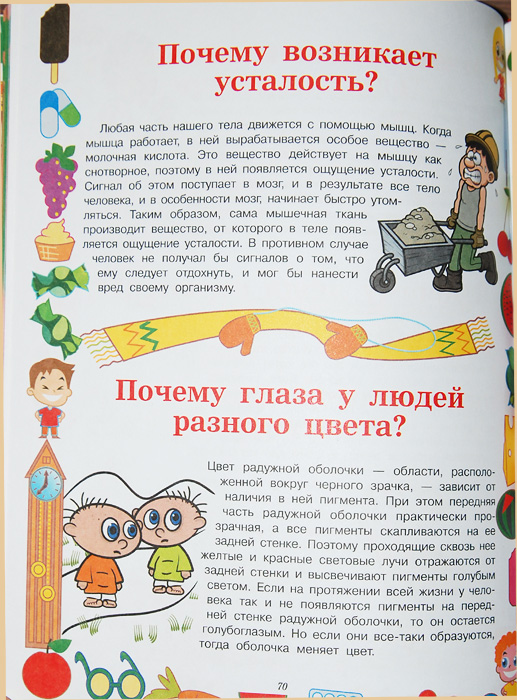 Чем эта книга отличается от других подобных кроме отличного качества печати на очень плотной бумаге (кстати весит солидно, может кому-то это минус) Эта развлекательная книга для детей и взрослых очень ярко оформленная с рисунками в манере комиксов. Это веселая книга и почему-то, когда начинаешь ее просматривать, отрываешься только через час. Ну интересно же. Вопросы такие простые, житейские. А вы знаете почему на мужской одежде пуговицы по правой стороне, а на женской по левой?
