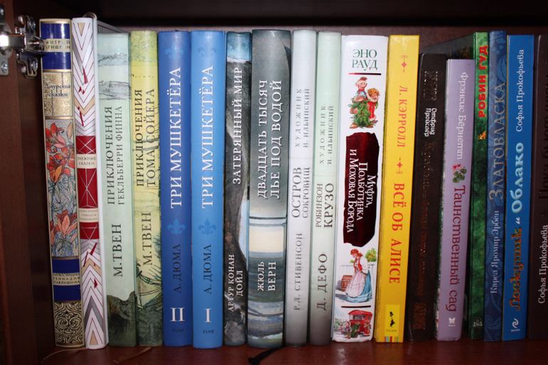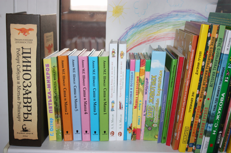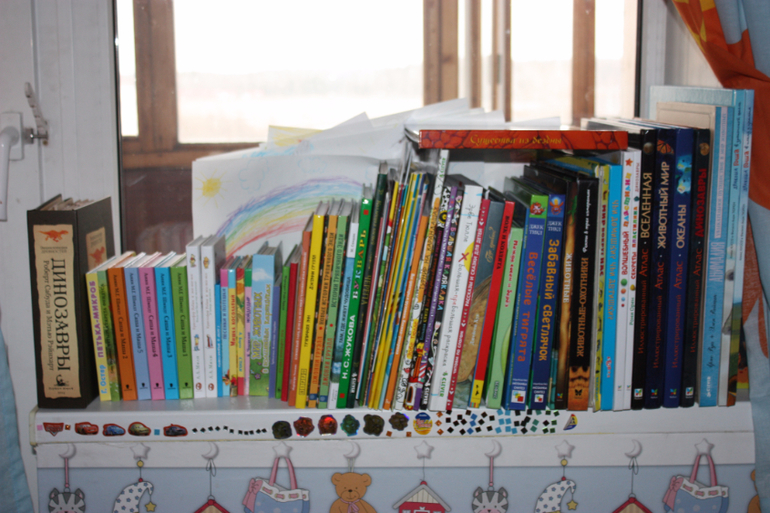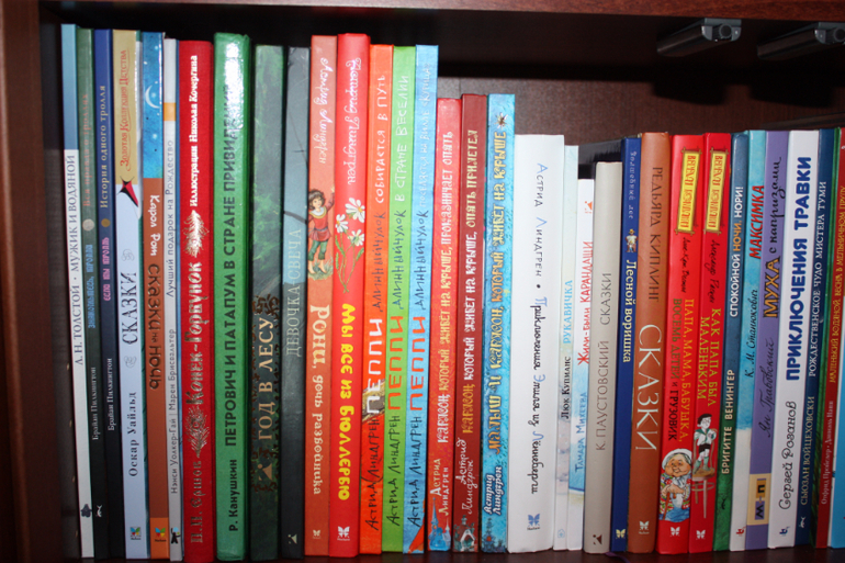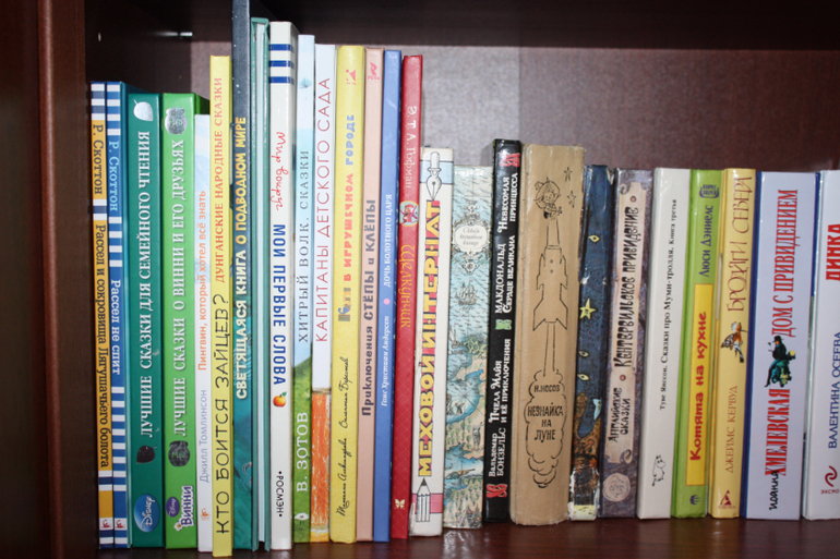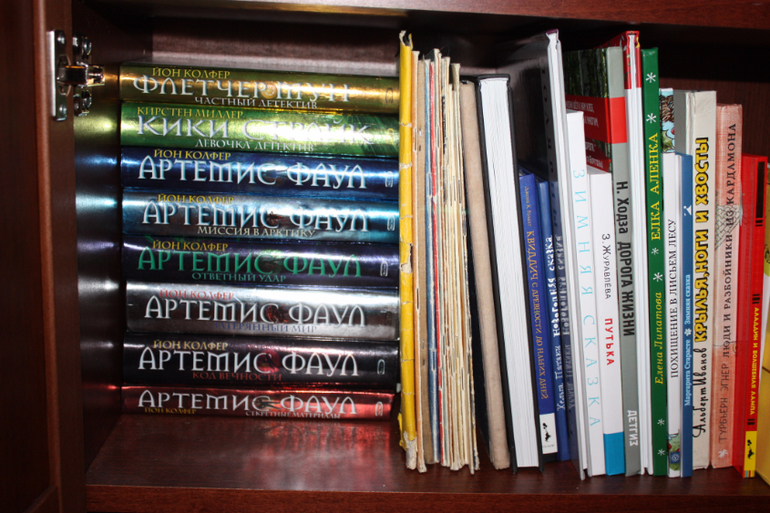 Здесь в основном книги на вырост, плюс много новых книг, до чтения которых очередь не дошла (всё-таки покупаются у нас книги с большей скоростью, чем читаются...).