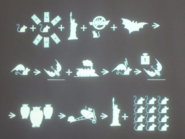 Первоначальная идея: мышь, увидев летучую родственницу, понимает, что хочет летать! Вот так интересно Торбен представил идею, а затем и её трансформацию: