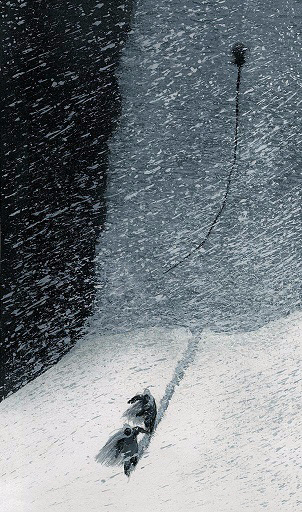 Несколько слов услышали мы об иллюстрациях. Игорь Юльевич отметил, что ему нравится "взять привычное и перенести в непривычное". Библейские события здесь изображены на территории нашей страны. Идут снега. "Всё хочется перенести в снег!"