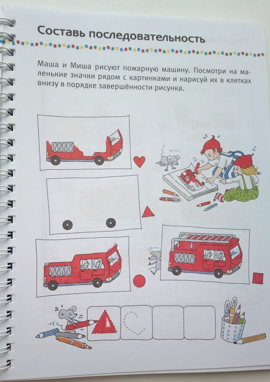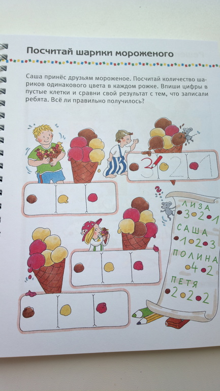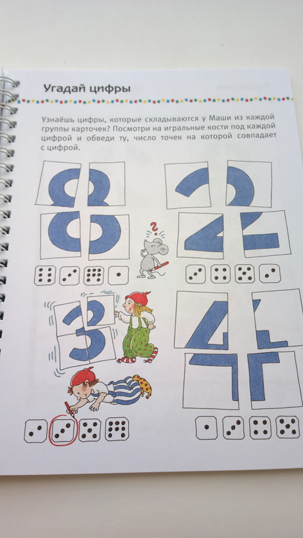 Книга на пружинке, поэтому ей очень удобно пользоваться - перекинул лист на пружинку и перед тобой только одна страничка с заданием и больше ничего ребенка не отвлекает. А можно вырывать отдельные листочки и предлагать ребенку как отдельное задание.(Знаю, что многие мамы такое практикуют).
