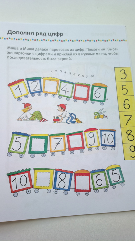-задания для знакомства с определенной цифрой. И опять в этой книжке, как и в предыдущей, есть задания "вырежи и приклей". Тиграну очень нравится вырезать, поэтому такие задания на работу с ножницами нам очень приглянулись: