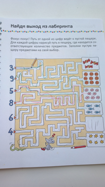 Но потом я поняла, то зря расстраиваюсь по поводу формата книги- пусть тут картинки мелкие и меньше заданий, посвященных написанию цифр( цифры я и сама могу написать ему в обычной тетради), зато тут больше цветных и, самое главное, интересных и разнообразных заданий, которые так понравились ребенку.