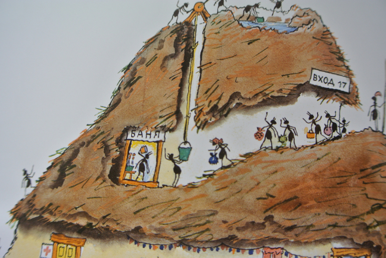 А Владимир Конашевич искусно нарисовал и показал нам муравейник в разрезе. Не без юмора, за что отдельное спасибо! Одни таблички с кличками "коров" чего стоят! Или больница! Тут тебе и рентген, и зубоврачебный кабинет, и операционная!!!