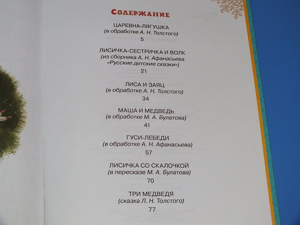 Сказки все в классических обработках - Толстой, Булатова, Афанасьев, к таким привыкли мы. Мои дети с удовольствием слушают эти сказки. Правда, про Царевну-лягушку мы ещё не читали. Она длинная, разбивать на части не хочется. А разом - могут не высидеть.