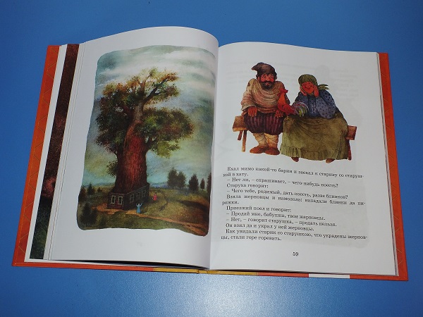 Но многие пугаются обработки в этих сказках. Лично я покупала эту книгу как раз из-за обработки! Мне не страшны устаревшие "непонятные" слова. Наоборот, это наша история, культура, ценность. Мы должны с этим знакомить и наших детей. А между прочим, обработка то в большинстве Афанасьева! У меня был огромный томик без картинок с его сказками. Слушала всё. Что-то, конечно, любила больше, что-то меньше. Но всё равно - это классика. Чего её пугаться?