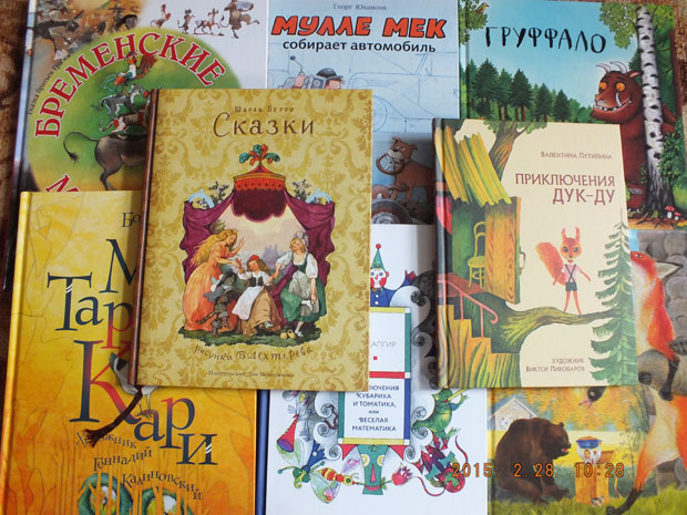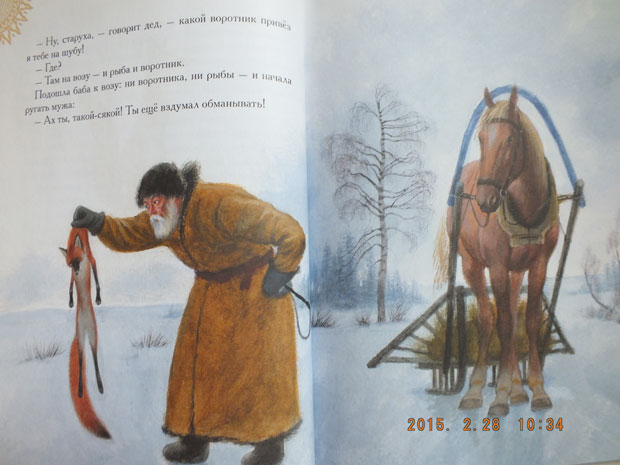 Из минусов: не всегда текст поспевает к картинкам и наоборот. Но это не страшно, ведь сказки знаю наизусть. В этой книге они в обработке Толстого, Булатова, Афанасьева (Лисичка-сестричка и волк).