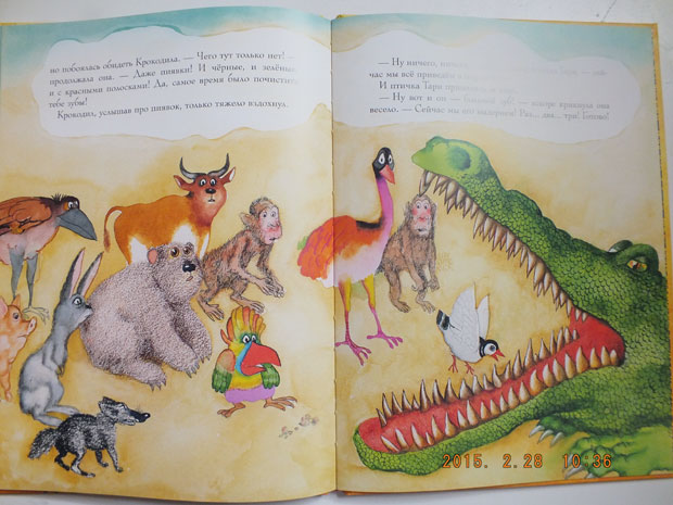 Конечно, в ней есть минусы, о которых уже писали: текст не совпадает с рисунками, поэтому пришлось его выучить. Но тут такой симпатичный крокодильчик. Просто загляденье. Калиновского я не очень жалую, но тут очень хорошо: