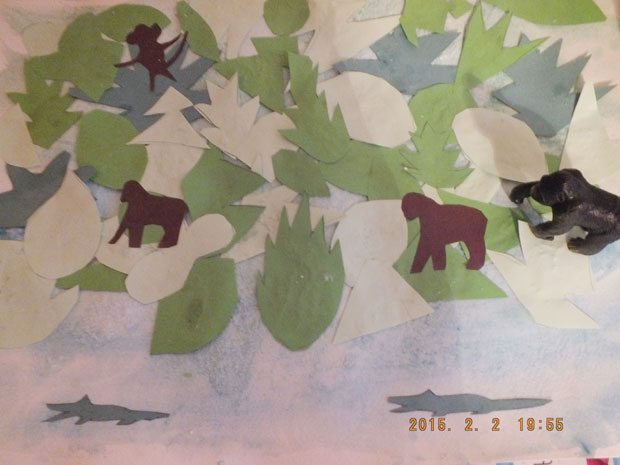 Очень красочная книга, прямо джунгли. Потом по мотивам делали работу творческую по этой книге, рисовали реку для крокодила и заселяли его туда.