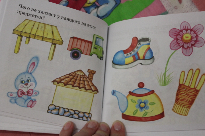 Книга небольшая, что очень даже удобно, можно брать с собой в дорогу, в больницу, что бы занять ребенка. Обложка твердая, бумага плотная. Рисунки простые и понятные. Каждая новая страничка содержит интересные и отличные друг от друга задания. Вот несколько разворотов, для примера. Готова была сфотографировать все развороты)