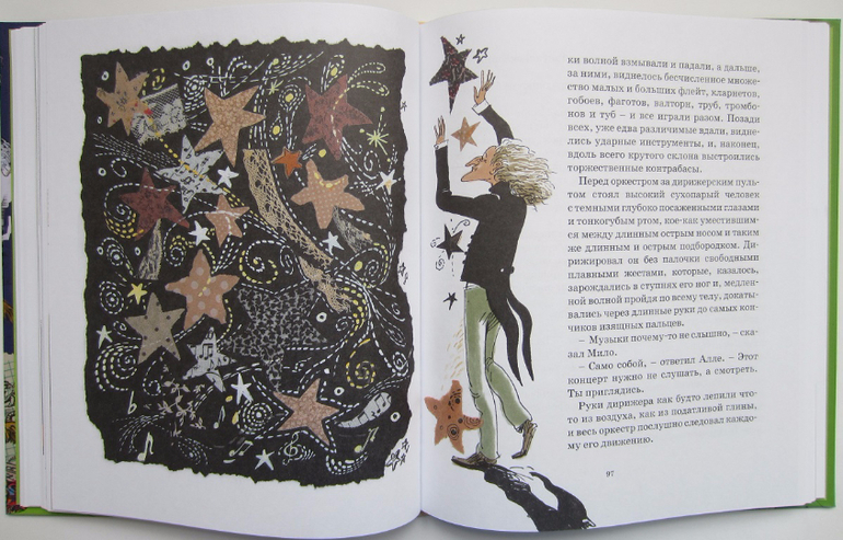 Обложка с частичной лакировкой, офсет немного просвечивает, иллюстраций много. Чаще всего иллюстрации на часть страницы, но есть и полностраничные, и на разворот (одна).