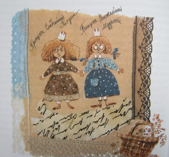 "...Одну мы наречем Поэзией, другую - Мудростью, - объявил он, и стали они Принцессой Сладчайшей Поэзии и Принцессой Высочайшей Мудрости и воспитывались во дворце".