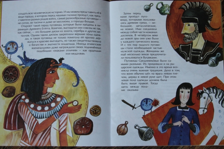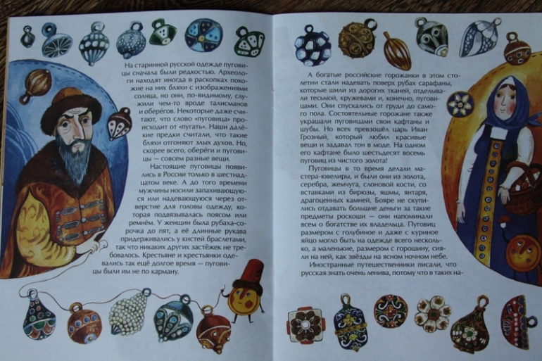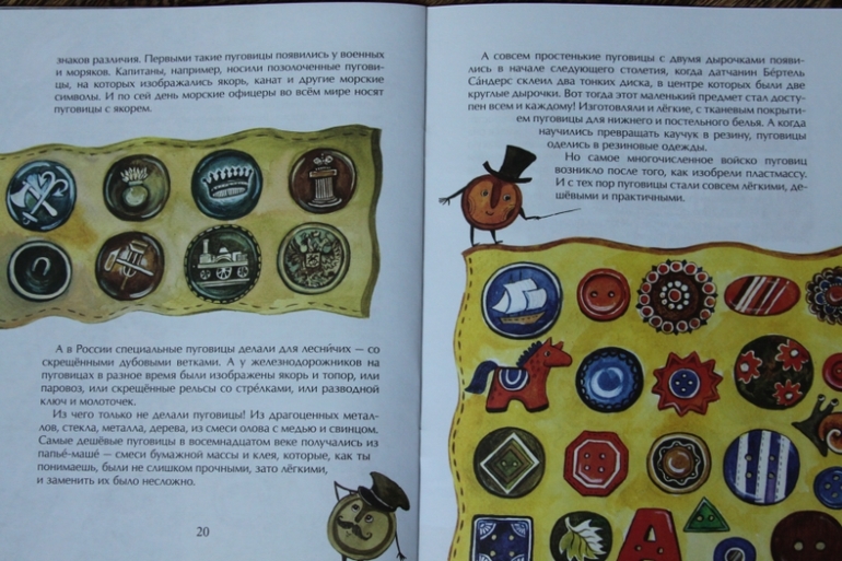 познавательные книги, энциклопедии"Мам, вот у этой пуговицы 2 дырочки, на джинсах пуговица вообще на ножке, у папы на пуговке 4 дырочки - они все такие разные, да?" А потом мы открываем мою шкатулочку с пуговками и рассматриваем. Хотя что там у меня рассматривать - старых пуговичек раз два и обчелся, в основном все круглые и неинтересные... Хотя даже размеры пуговиц приводят дочку в восторг - 4 см это же просто огромная пуговка, а есть 5мм - совсем кроха. А ещё деревянная пуговка с трещинкой - старенькая, откуда она появилась уже никто не помнит...