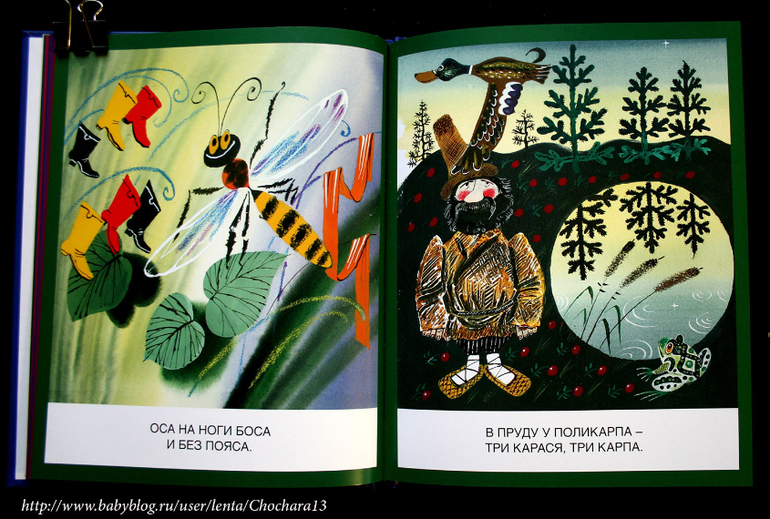 Поэтому считаю эту книгу с замечательными русскими скороговорками и такими чудесными рисунками Александра Аземши просто находкой для нашей библиотеки. Уверена, дочка оценит, когда чуть подрастёт!