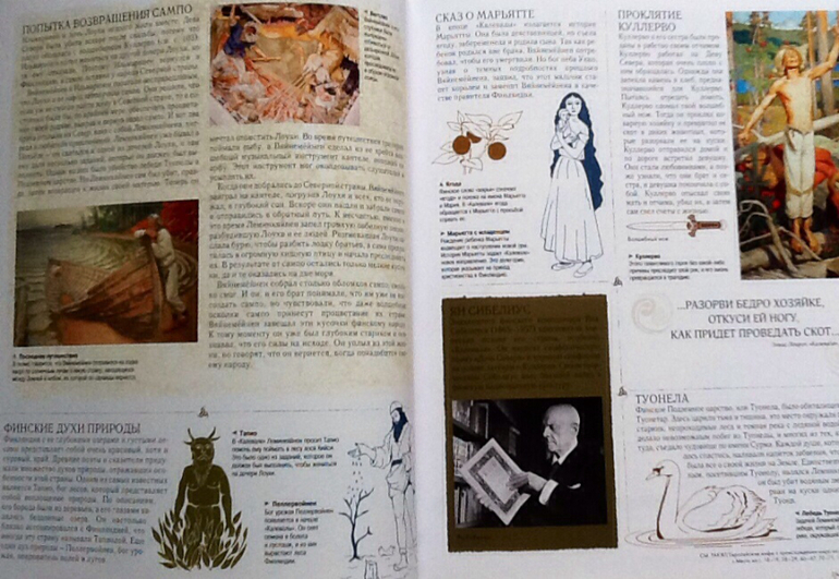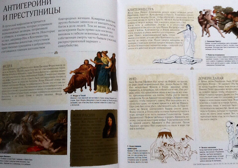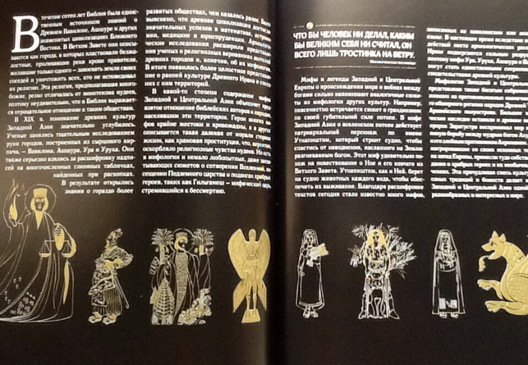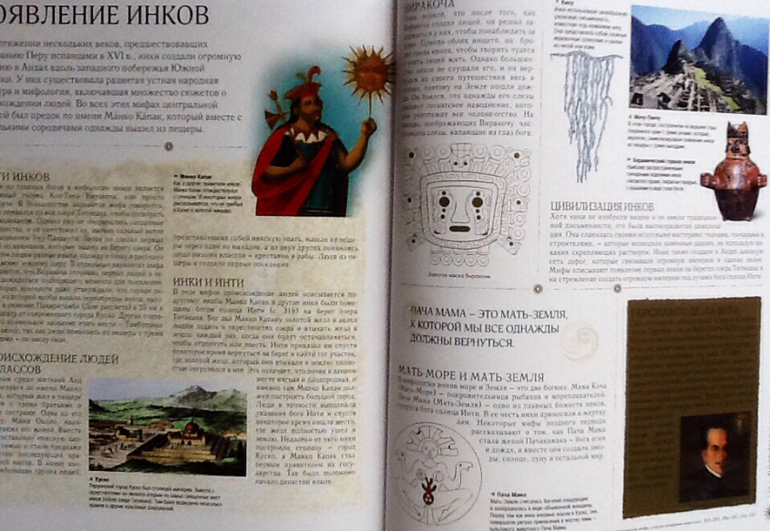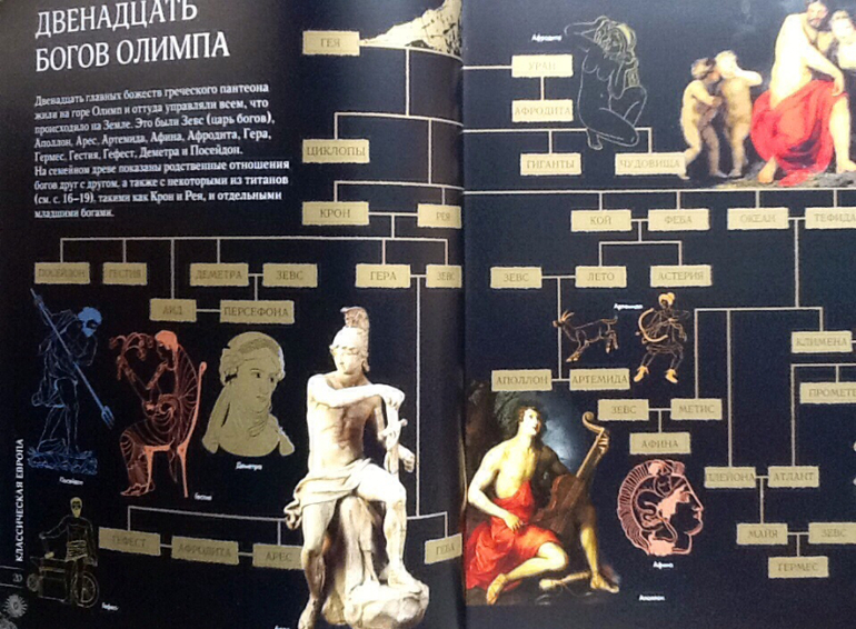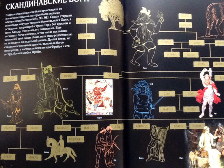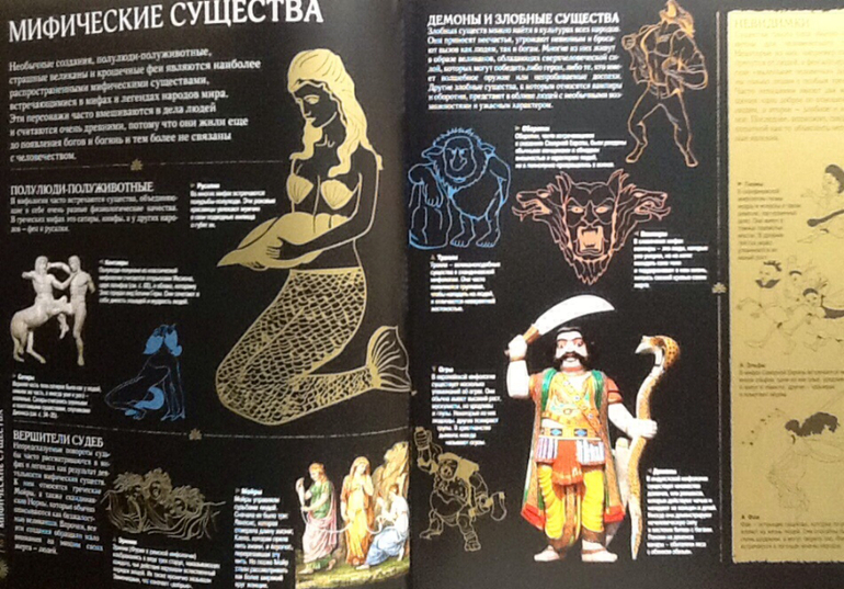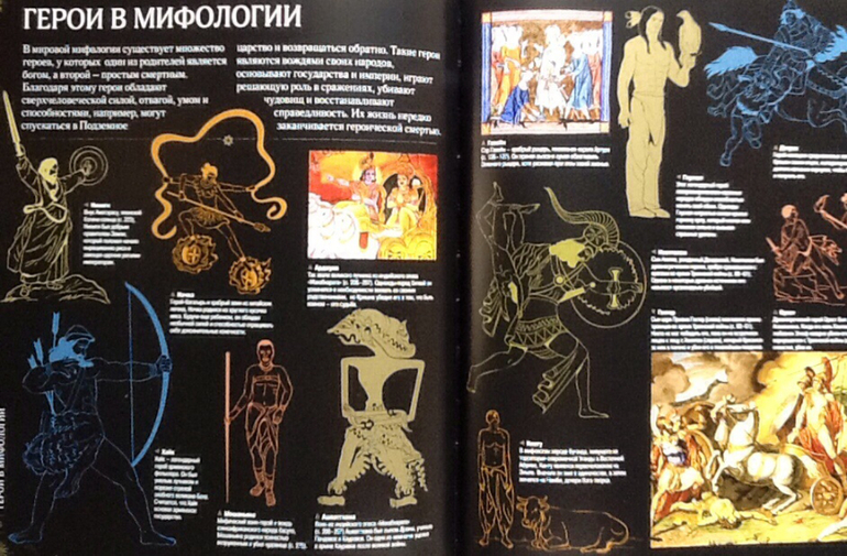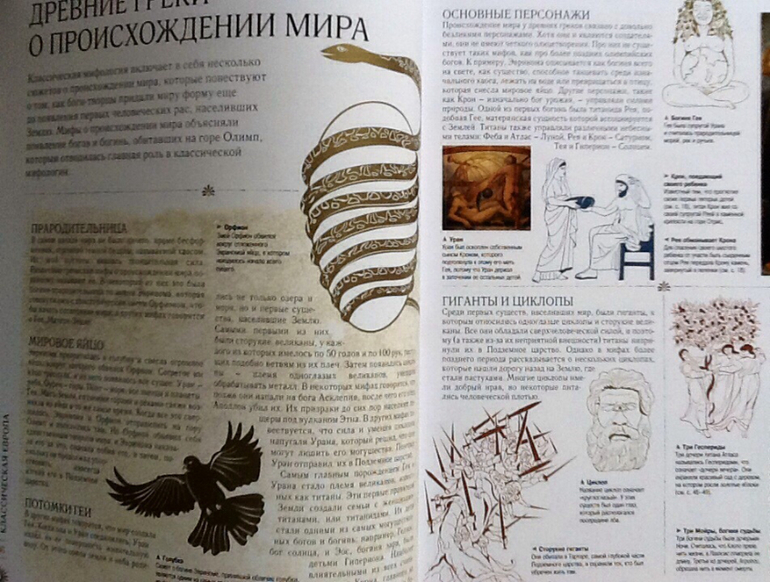Помимо мифов и легенд, в книге дается характеристика персонажей и богов мировой мифологии, так же есть литературные пересказы эпосов. Мифы и легенды представлены так же в литературном пересказе. Есть генеалогические древа богов различных мифологий. На страницах книг встречаются перекрестные ссылки, которые помогают проследить взаимосвязь мифов, легенд, богов и героев.