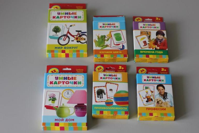 Нам очень понравились, уже с удовольствием занимаемся по большим карточкам (к слову в серии 2 вида карточек - 32 большие это для двухлеток, 36 поменьше -для трехлеток).