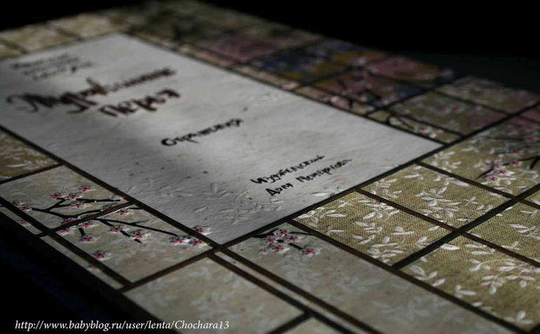 Страницы плотные, мелованные. Тонирование под старый пожелтевший пергамент с трещинами от помятости.