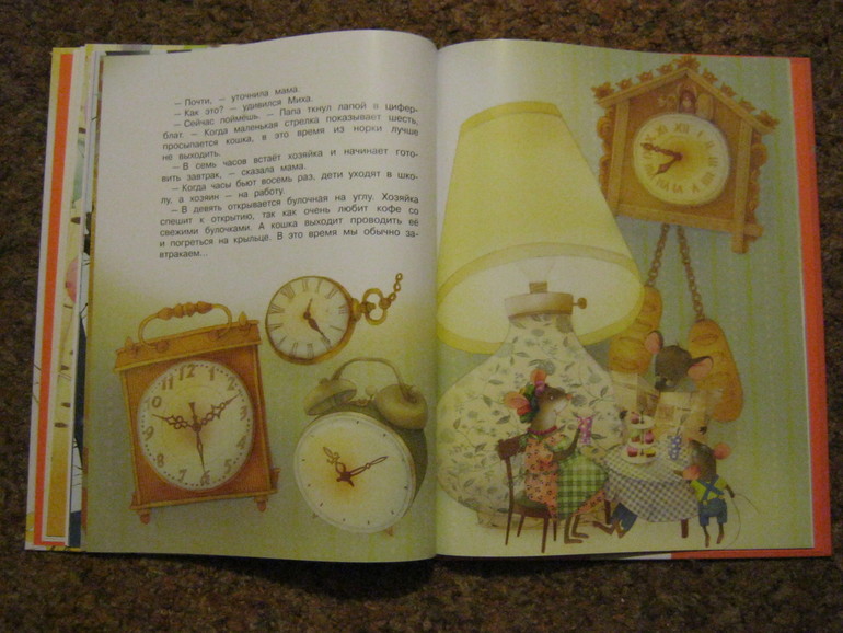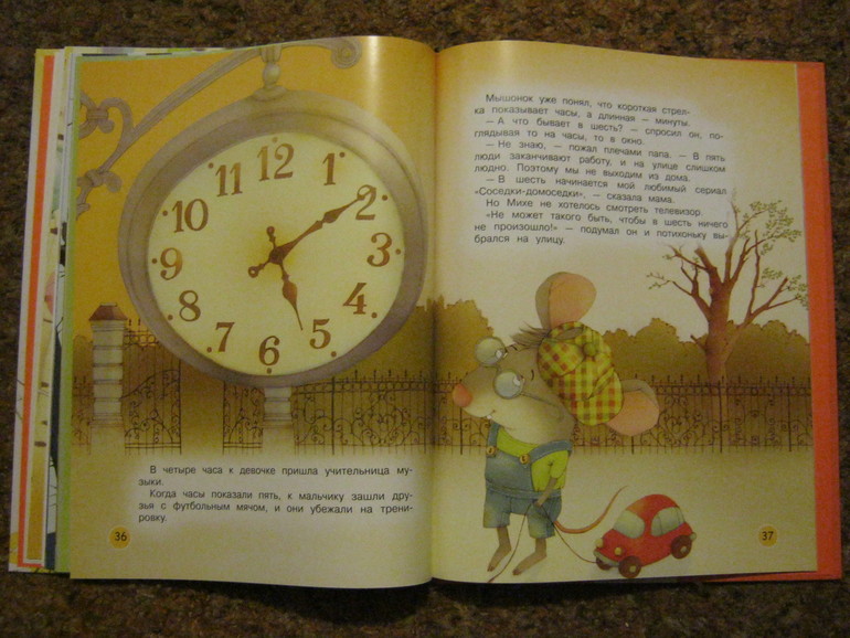 Следующую сказку можно использовать при изучении с ребенком времени и часов. Всучить ему, например, циферблат, чтоб выставлял на нем каждый упомянутый в книге час. А можно просто читать и не заморачиваться - ведь сказка не только о часах, но и о дружбе. О том, как мышонок заблудился в городе, а воробей помог найти ему дом.