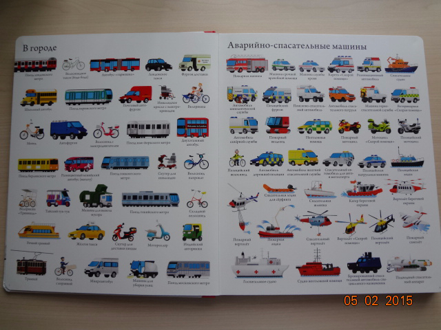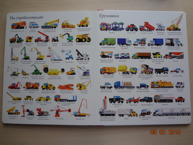 Никакой дополнительной информации здесь нет, только "голые факты", названия машин. Но, по видимому, сыну пока хватает. Уже многие названия выучил и шокирует бабушек своими познаниями) Особенно любит развороты про легковые автомобили и спецтехнику.![]()