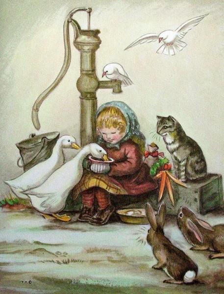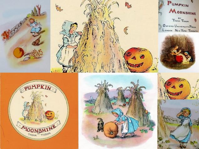 В 1938 году вышла и первая книжка Таши Тудор Pumpkin Moonshine. Придумала ее Таша для своей племянницы. В книжке рассказывается, конечно, не о том, как делать самогон из тыквы. Просто милая старомодная история о девочке Сильвии Энн, которая ищет самую большую тыкву. А после разных приключений сажает в землю зернышко, чтобы самой вырастить самую большую тыкву.