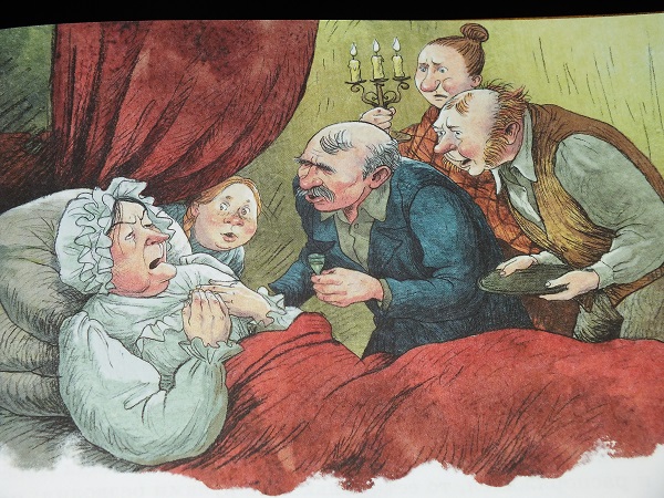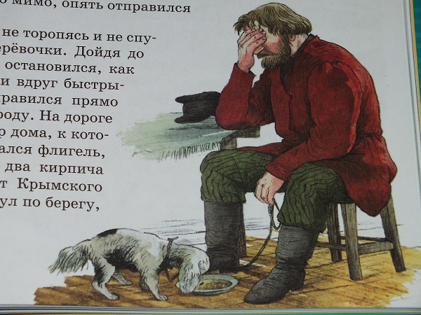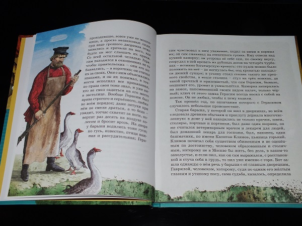 Иллюстрации Ольги Громовой я считаю ни плохими, ни хорошими. Они очень своеобразные. Много книжечек из серии "Настя и Никита" проиллюстрировала эта художница, её "почерк" узнаваем. Меня больше всего привлекло изображение Герасима и самой собачки Муму. Они именно такие, какими бы лично я хотела их видеть. Остальные герои выглядят карикатурно (на мой вкус). Иллюстраций много. Большие или мелкие, но они есть на каждом развороте.