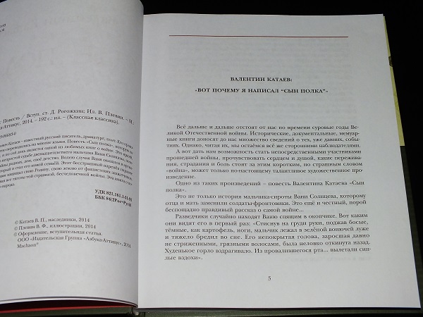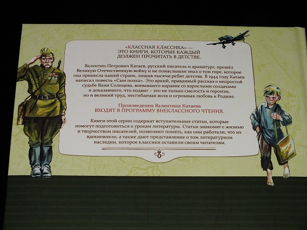 Мы Катаева читаль как раз вот перед этим 9 мая,именно в этом издании. Ребенок понял и ему очень понравилось, а когда читали все смотрел и спрашивал, что же дальше, т.е был неподдельный интерес. Потом еще и фильм посмотрел.