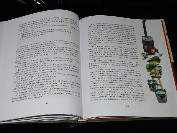 Книга достаточно объемная по сравнению с другими из этой же серии. Оформление хорошее, иллюстрации В.Плевина четко передают настроение автора. Странички не слишком плотные, но так как эта повесть не для малышей, не вижу в этом ничего криминального. Зато они белоснежные. Не просвечивают.