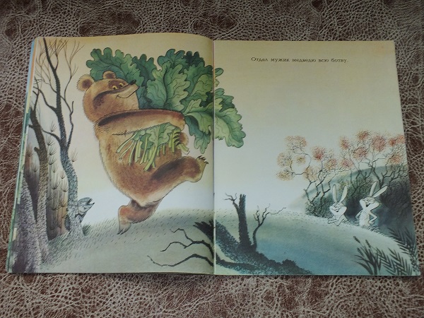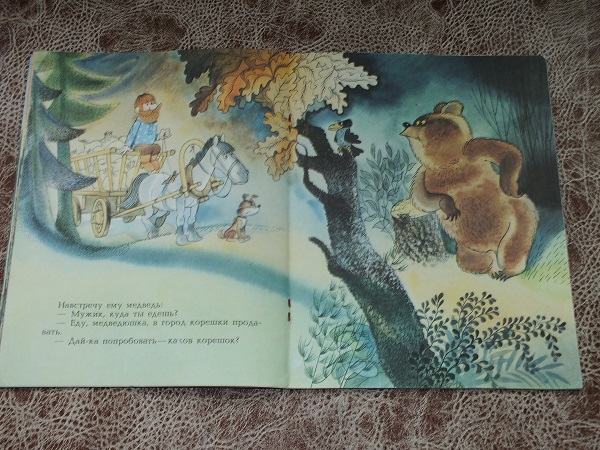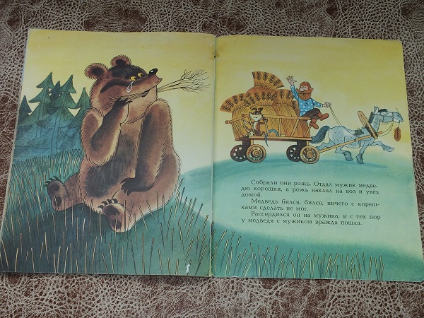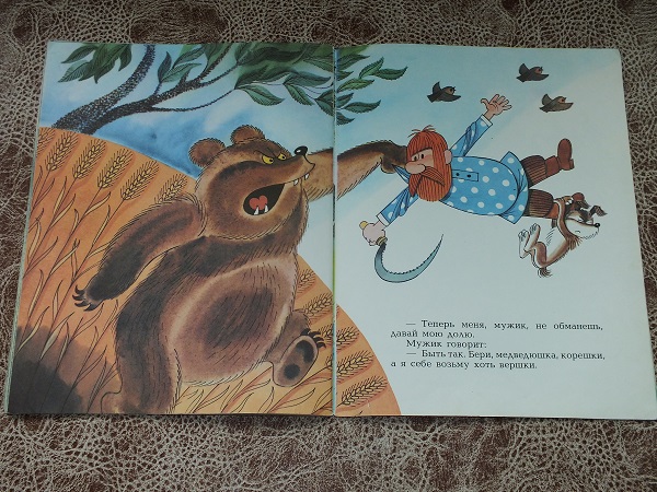 . Мужик потом посеял семена. Давай теперь мне корешки, а тебе вершки. Выросла рожь. И медведь съел какие-то палки, оказывается. Обманули медведя. И всё".