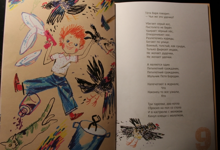 На книгу "Чудаки" я очень советую обратить внимание даже не столько из-за Введенского, сколько из-за Юрия Владимирова. В книге всего шесть его произведений, один рассказ и пять стихотворений, но они - замечательные! Веселые, сумасшедшие, озорные, игровые, и зубодробительные. Попробуйте-ка прочитайте "Барабан" на одном дыхании и без запинок)) Именно стихи Владимирова дочка предпочитает всем другим и в этом сборнике, и в "Веселых чижах". Иллюстрации Острова, с непривычки они могут показаться странными, но у меня это уже третья книга художника, я уже рассмотрела и оценила.
