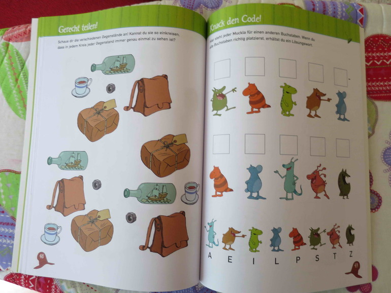 В процессе написания перевод заданий для младшей племяшки выяснилось, что задачки какие-то бессистемные! Заявлено было на возраст 5-6 лет, но, некоторые задания подойдут и для маленьких, т.к. ответ или отгадка не требует усилий, а просто бросается в глаза, как и раскраски, например; а есть и "сложные" задания, например, на сложение двузначных чисел, что, явно, не для 5-леток...
