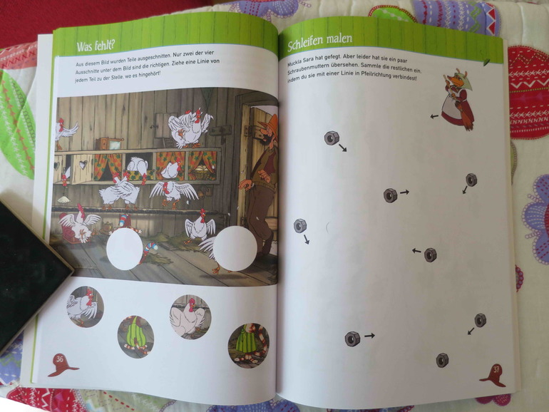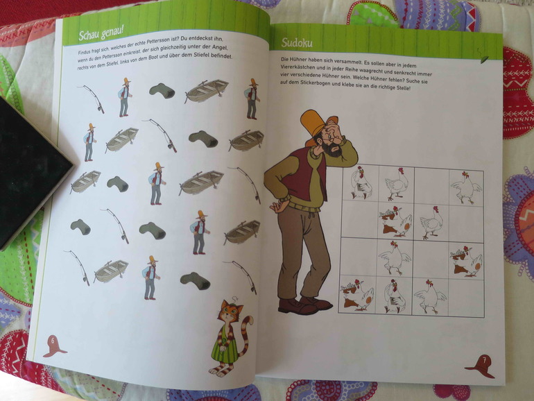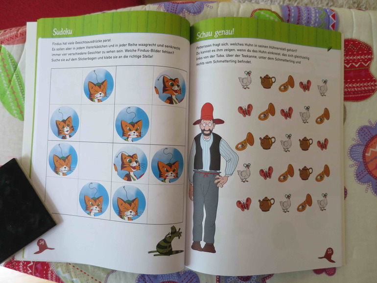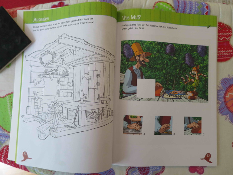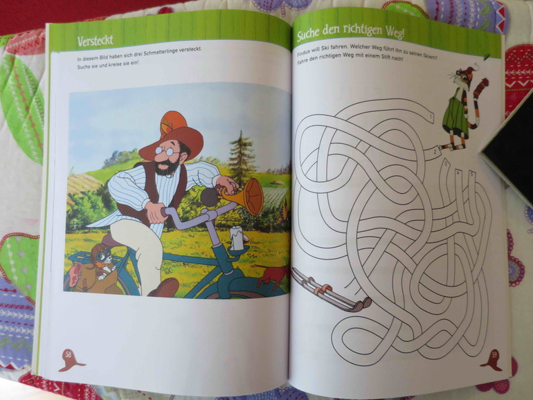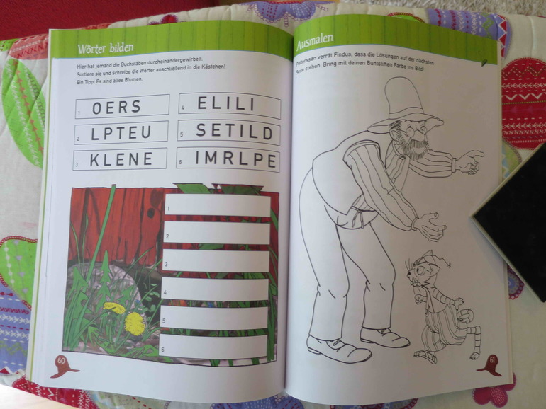 Повезем в подарок племяшкам, среди прочего), словарь из 1000 английских слов с картинками и журнальчик с загадками и раскрасками про Петтерссона и Финдуса.