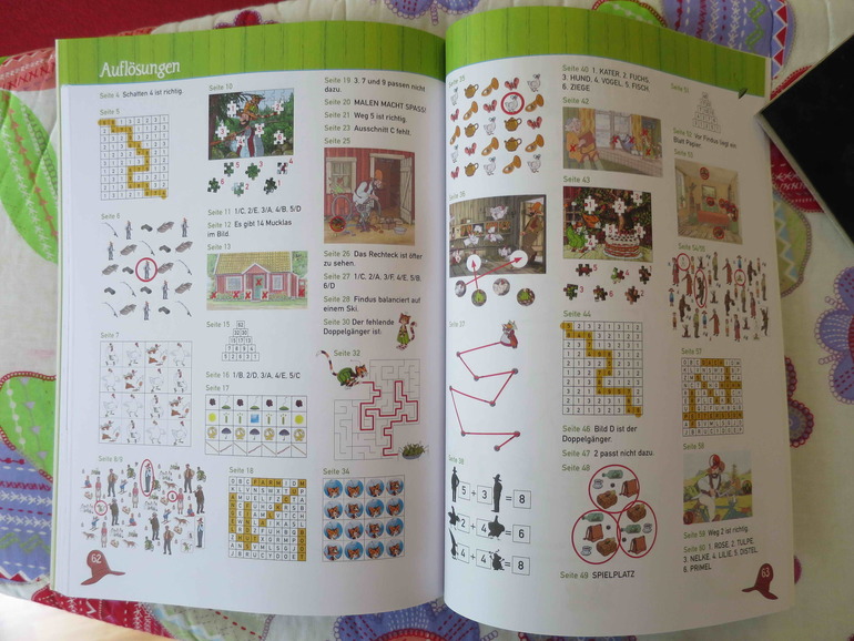 И на последней странице заданий... Петтерссон говорит Финдусу, что на следующей странице находятся ...ответы!