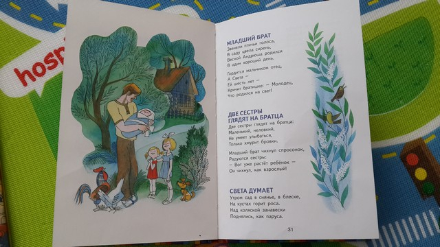 Надо сказать, что это отличная книга для тех, кто ожидает второго малыша. У нас пользовались спросом стихи про Андрюшу. Тот, кто ждёт девочку сможет почитать про Настеньку и Вовку, который стал старшим братом.