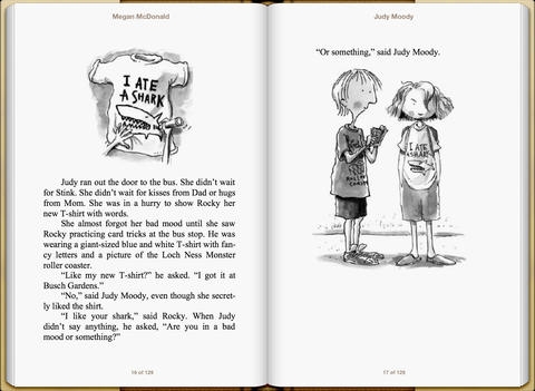 На вас чекає знайомство з кумедною дівчинкою на ім'я Джуді Муді, у якої частенько змінюється настрій. Він буває хороший, поганий, передшкільний, шкільний - який завгодно. А ще у неї є молодший братик Стінк, найкращий друг Рокі та «заклятий» друг Френк Перл. Вони потрапляють у різноманітні пригоди, вчаться тішитися маленьким і великим радощам. А головне - вони неодмінно подарують усім читачам усмішку!