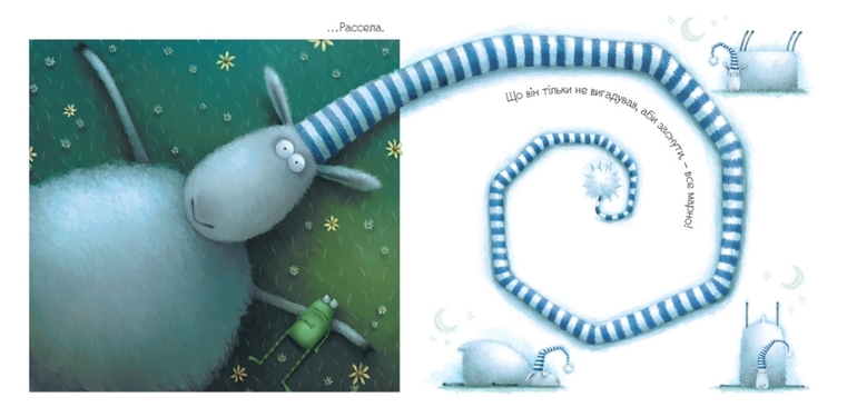 Це - баранчик Рассел. Він не завжди й не все робить так, як решта овець у його отарі. А сьогодні у нього безсоння: всі сплять, а він - ні. Як тільки не намагався Рассел приспати сам себе, нічого не допомагало. Чи вдасться Расселові здолати капосне безсоння? Хутчій перегорніть сторінку, щоб про все дізнатися.