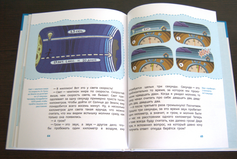 Приятным дополнением идут задания-опыты в конце каждой главы. Они все легкие, родителям не потребуется сильно напрягаться для их реализации, они доставят много радости ребенку и позволят наглядно, ни через слушание, ни через воображение, а именно своими глазами увидеть работу многих законов и явлений физики в реальной жизни, а значит они станут для них гораздо ближе и понятнее. Как мне кажется, это будет замечательным маленьким фундаментом для учёбы в будущем.