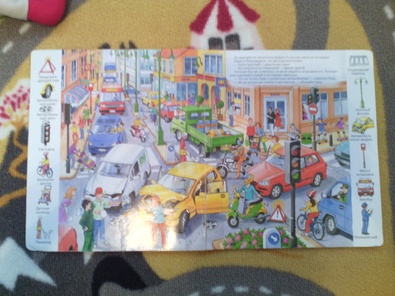 8Ехали машины.Мало текста,рисунки людей не очень(нет прорисовки черт).Но ребенку понравилось.