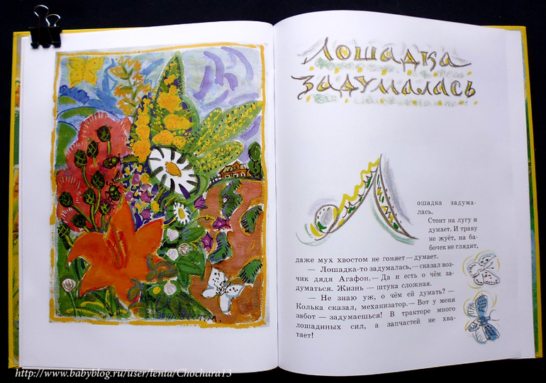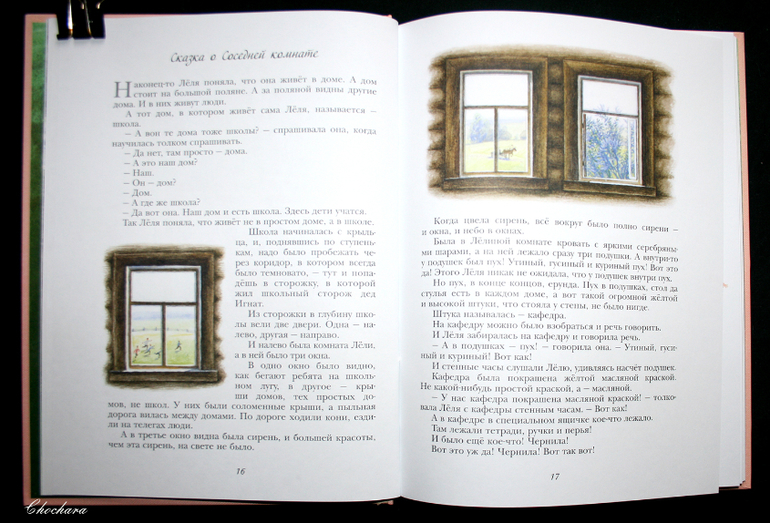 Или вот, сказка про окна: было в комнате, где жила Лёля, три окна. В этом - видно поле, в другом - лошадь. А в этом - сирень!