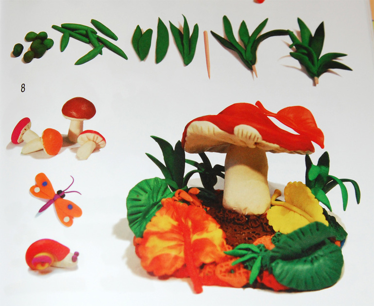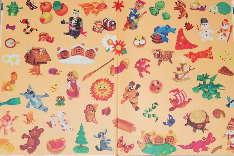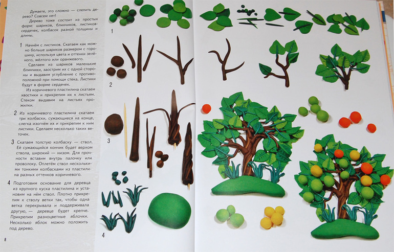 Книга устроена в последовательности Сказка - пластилиновая картина к ней с обилием деталей и персонажей разной сложности - подробный фотоотчет как сделать каждую деталь и всё собрать вместе с текстовым описанием.